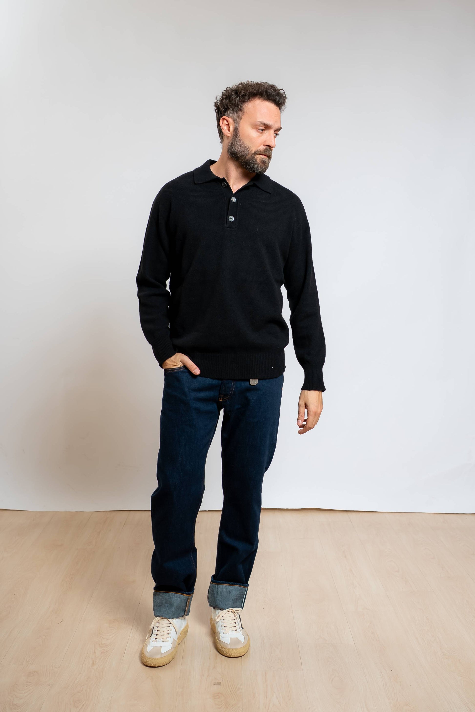 Polo realizzata in lana e cashmere nero
