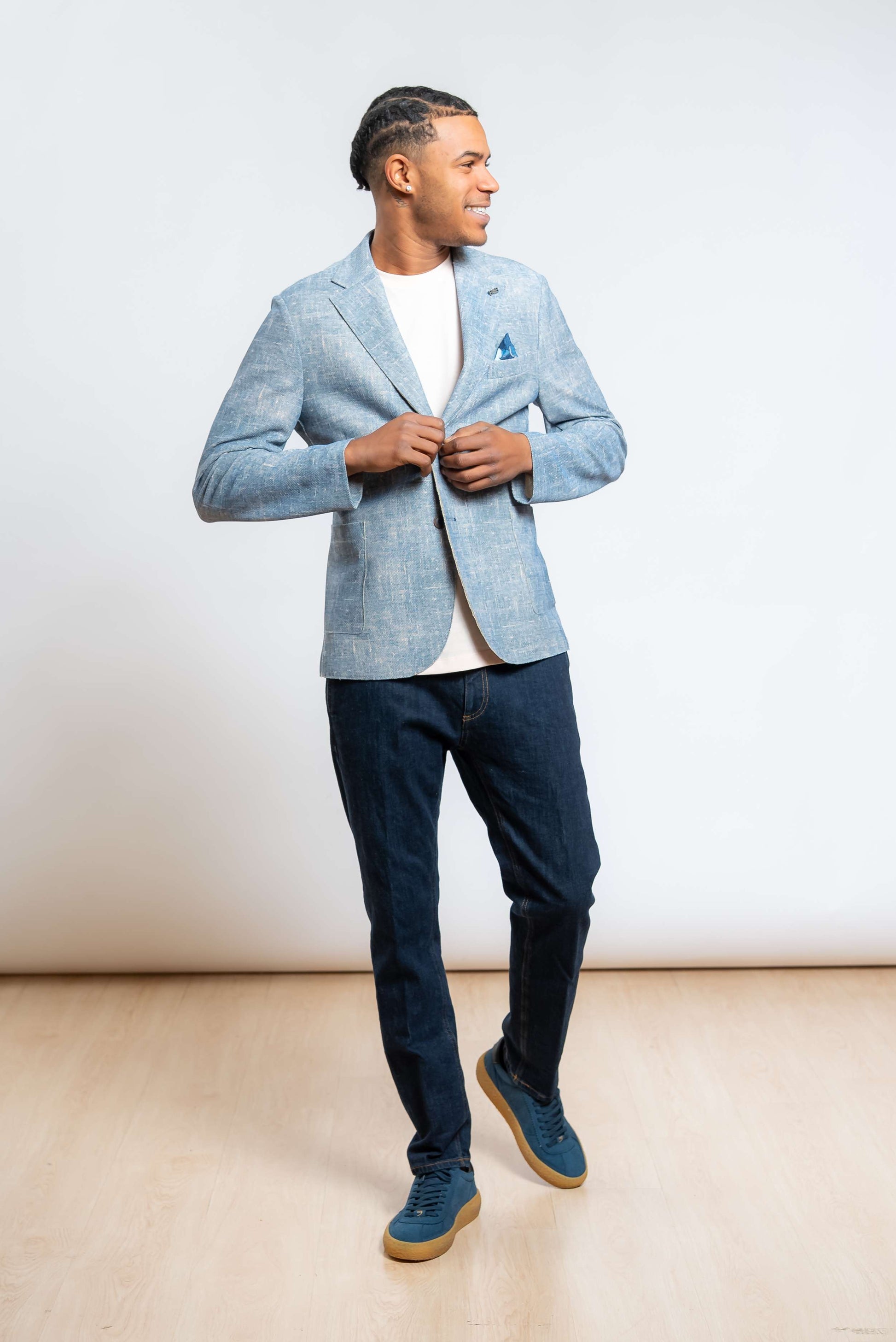 Il modello è alto 185 cm, pesa 70 Kg e indossa una 48