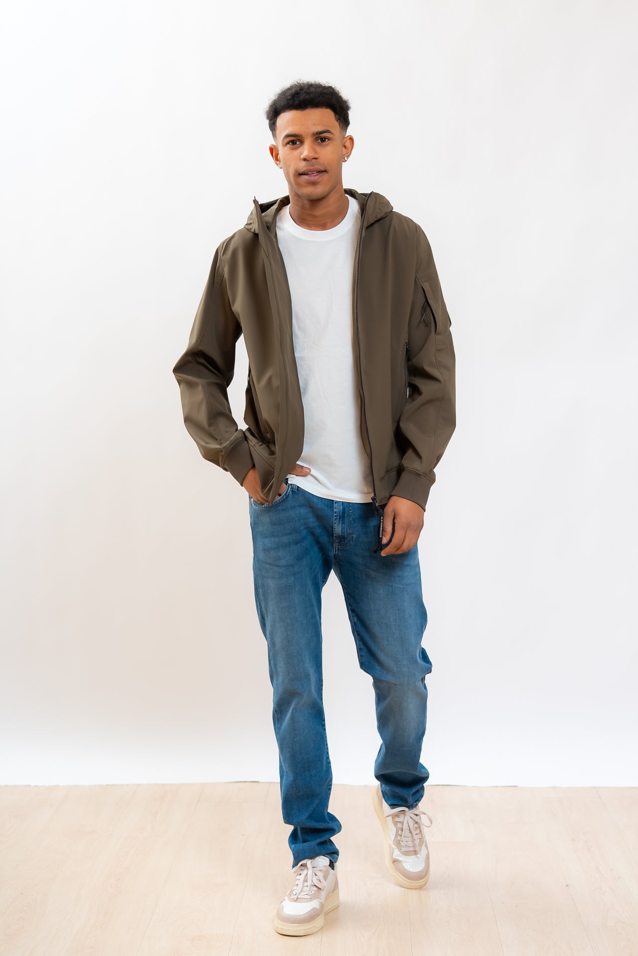 Chiusura con zip a scomparsa sul davanti ed etichetta logata sul cursore