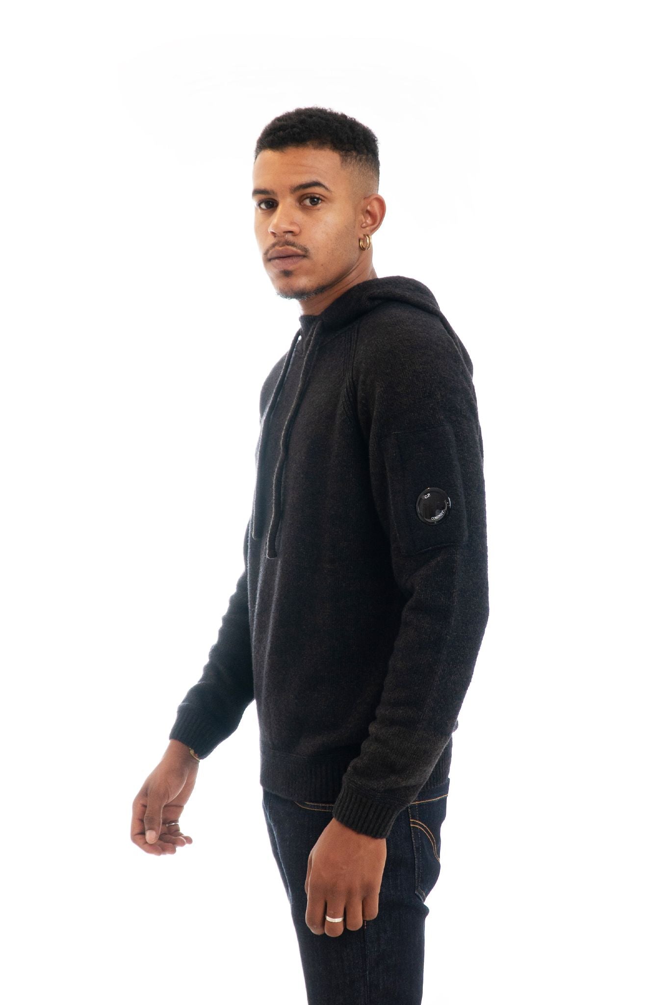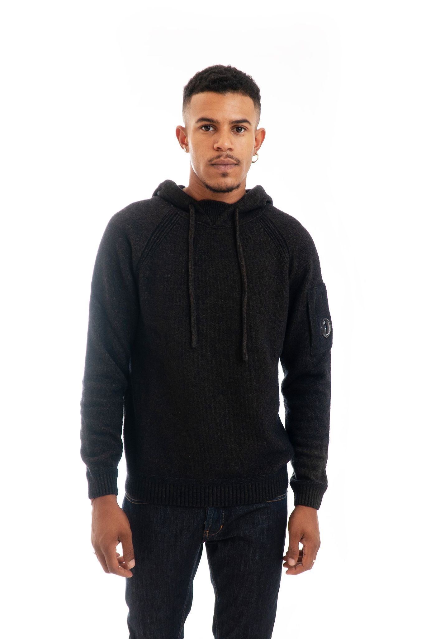 Maglione verde scuro modello felpa con cappuccio in misto lana.