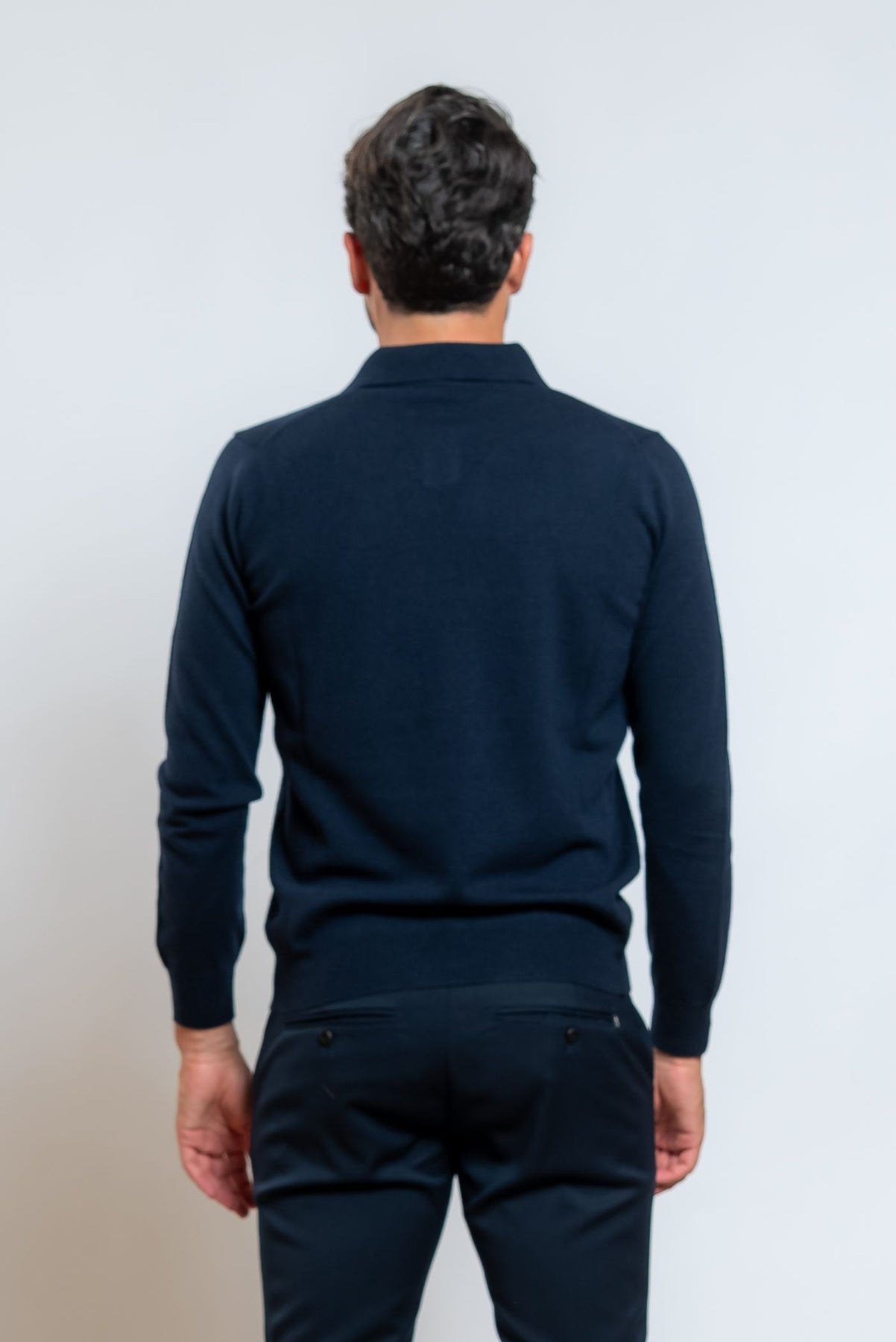 KANGRA CASHMERE Polo a Maniche Lunghe in Lana Blu