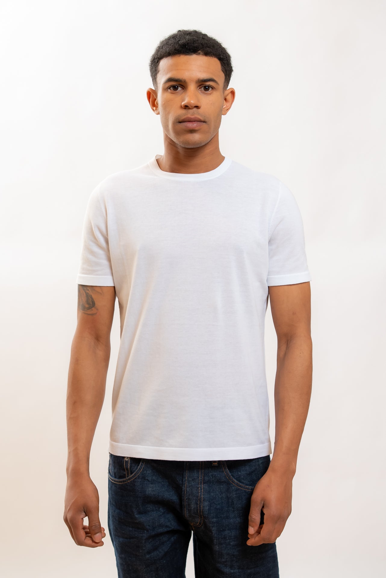 Maglia a Maniche Corte Bianca in Filo di Cotone