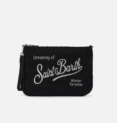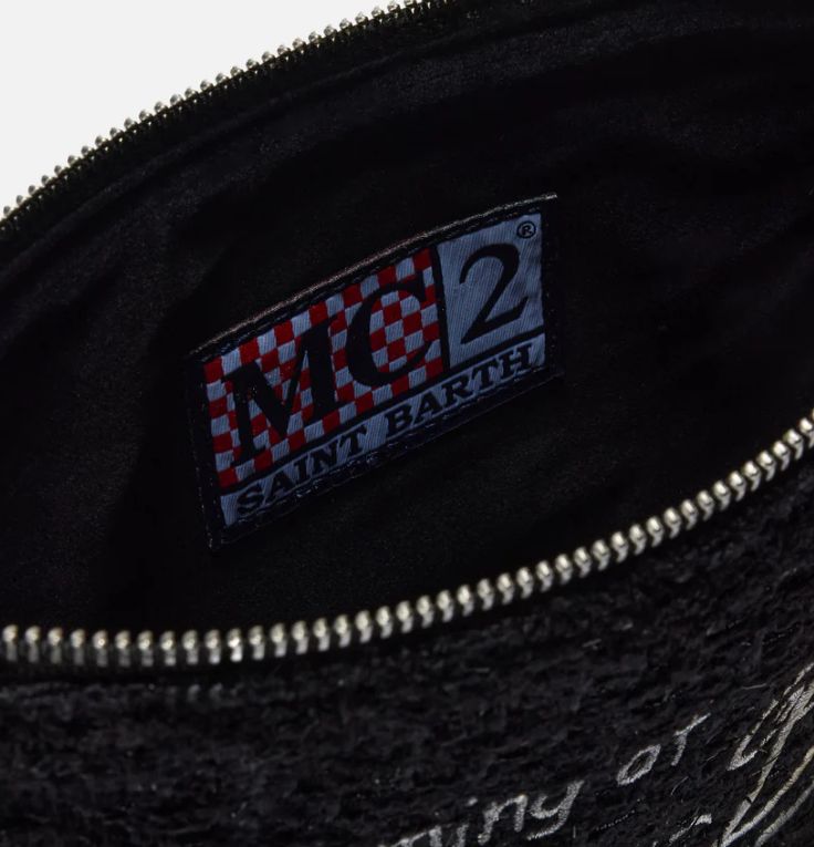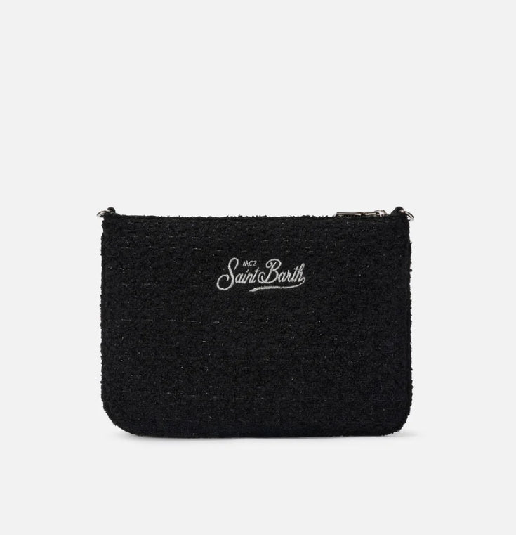 Borsa in tweed nero Logo davanti Tracolla regolabile e removibile Chiusura con zip Tirante da polso