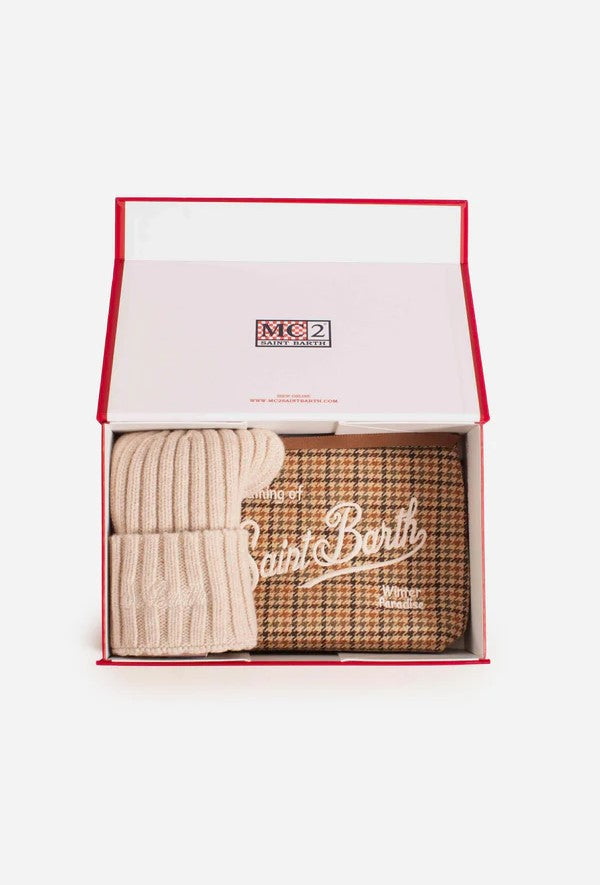 Box Regalo Cappello Beige e Pochette Pied de Poule