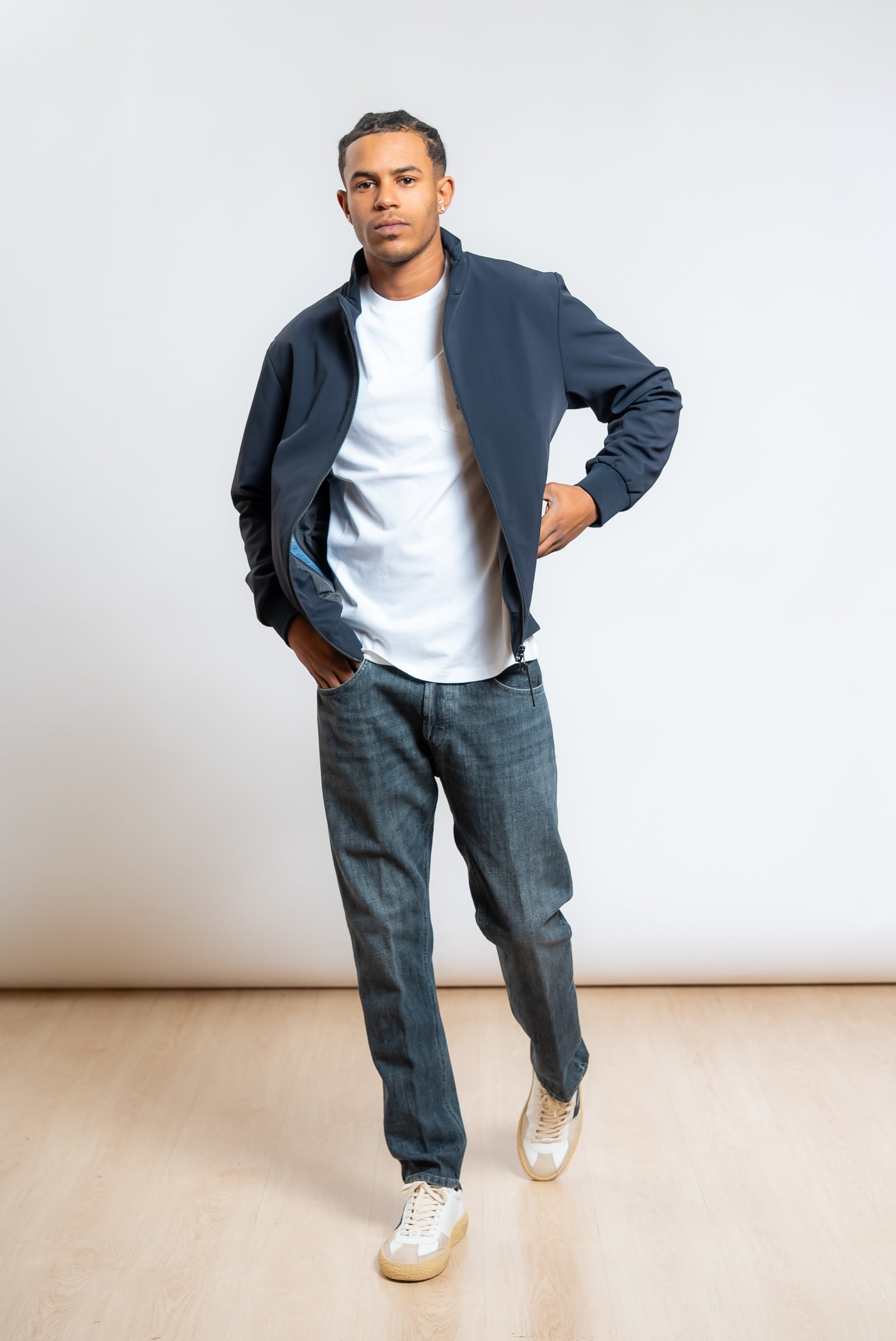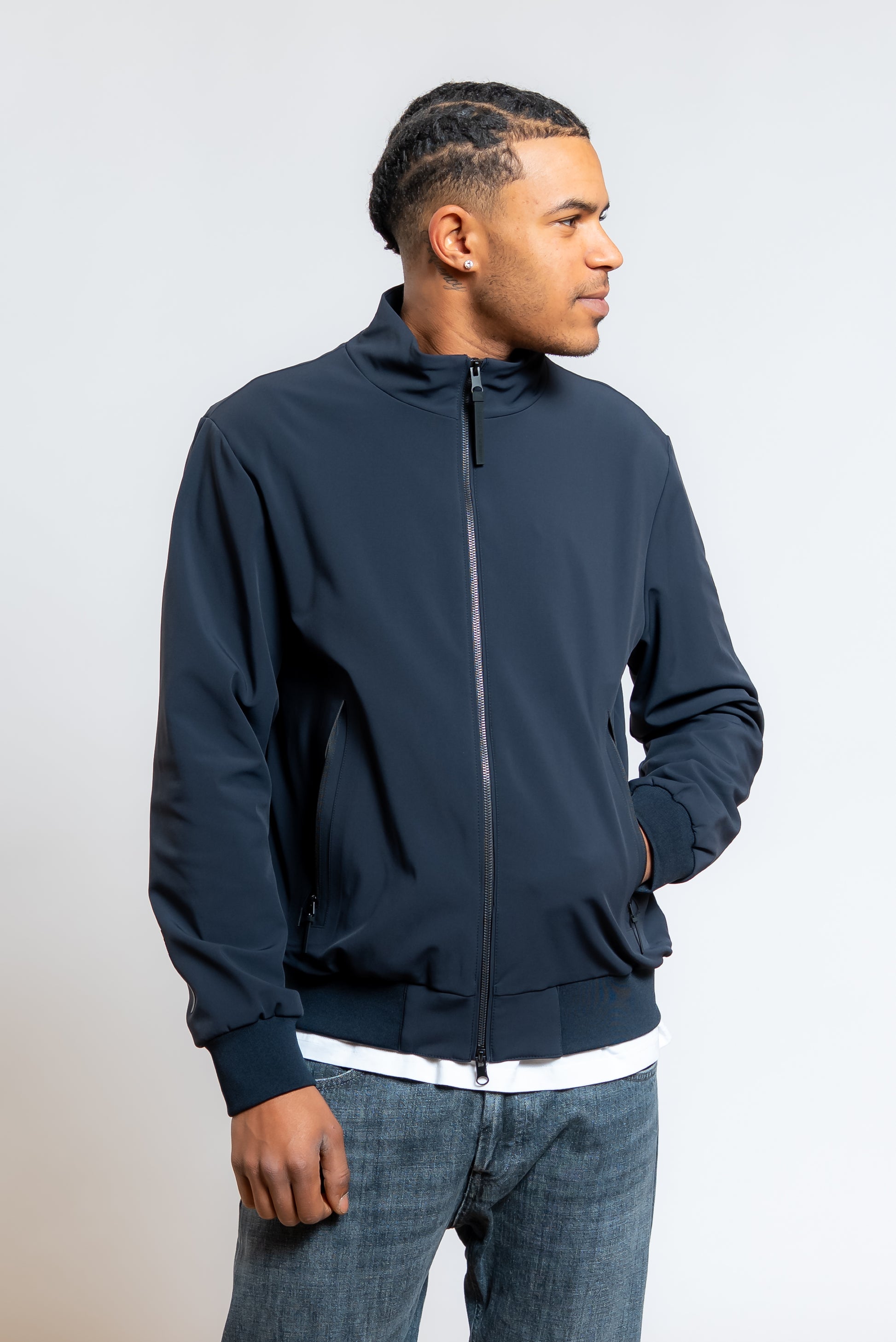 Giubbino modello bomber realizzato in tessuto tecnico blu